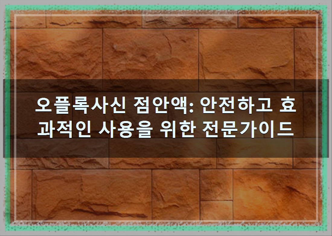 알아보자 :: 오플록사신 점안액: 안전하고 효과적인 사용을 위한 전문가이드